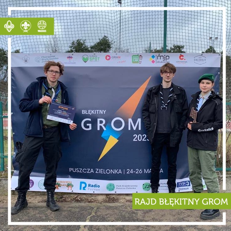 Ponadto czteroosobowy patrol harcerzy naszego hufca zajęło 3. miejsce w swojej kategorii na trasie Błękitnego Gromu, pokonując ponad 50km rowerem, 10km w biegu na orientację oraz kolejne 10 kajakami!